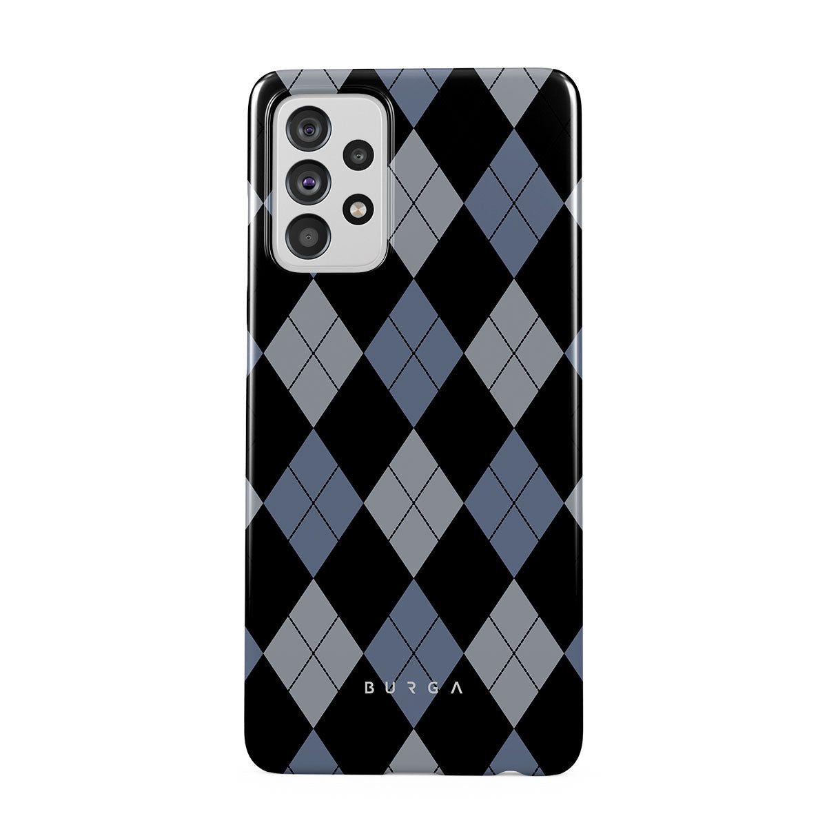 Discover our Trouble Samsung Galaxy A72 4G / 5G phone case design—a classic argyle pattern featuring stark black diamonds that seamlessly blend with two distinct shades of blue. Made for those who respect the classics but aren't afraid to disrupt the norm.