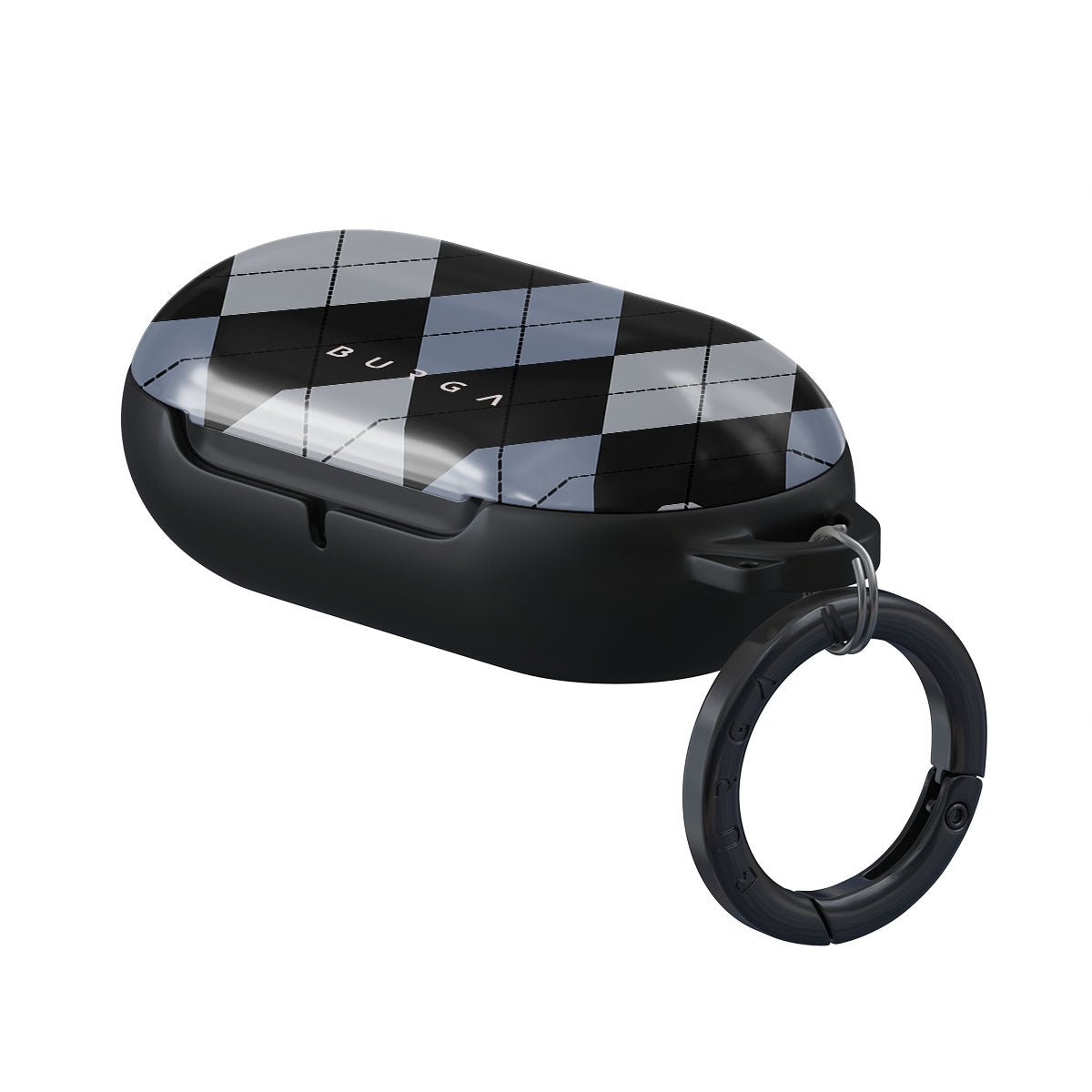 Discover our Trouble Samsung Galaxy Buds case cover design—a classic argyle pattern featuring stark black diamonds that seamlessly blend with two distinct shades of blue. Made for those who respect the classics but aren't afraid to disrupt the norm.