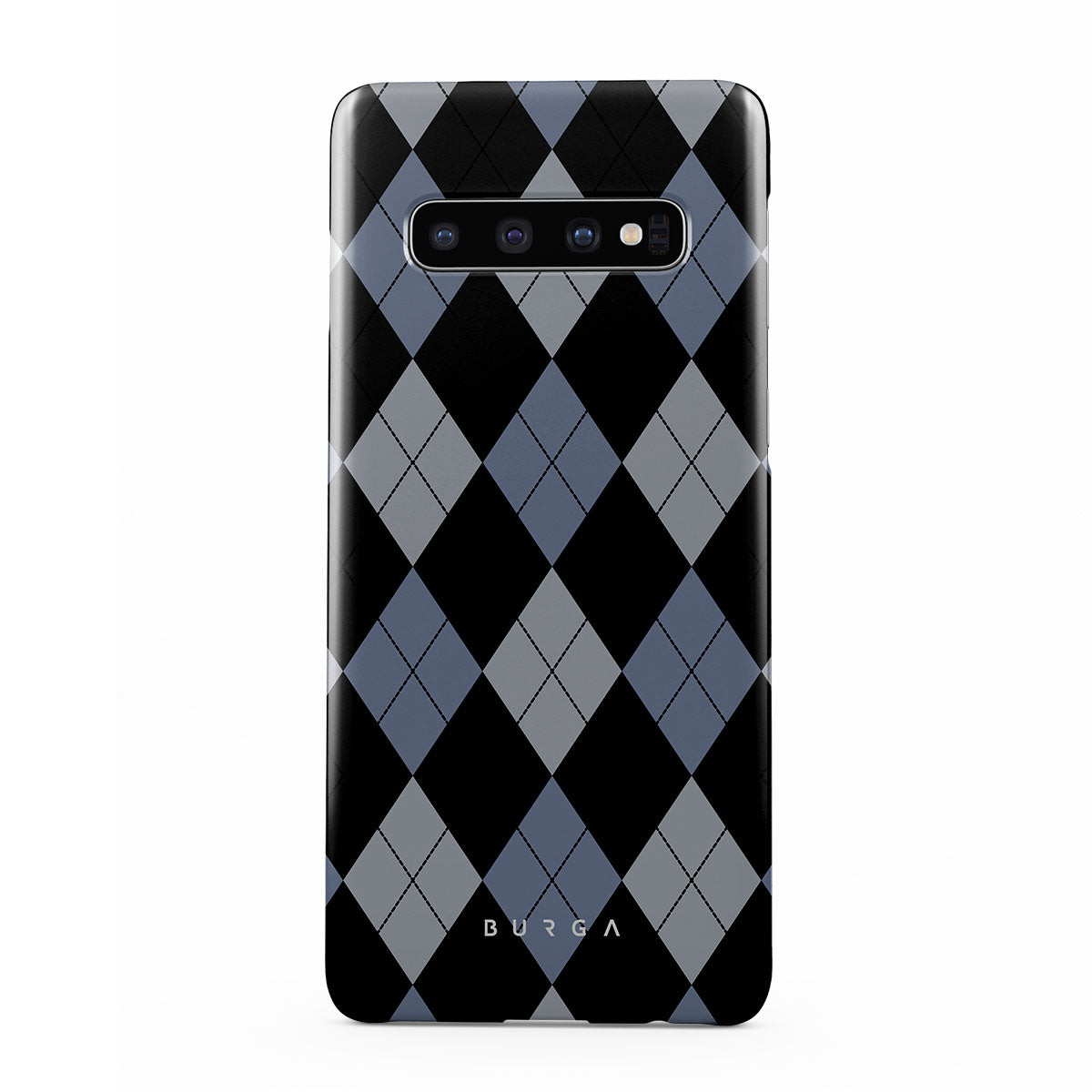 Discover our Trouble Samsung Galaxy S10 Plus phone case design—a classic argyle pattern featuring stark black diamonds that seamlessly blend with two distinct shades of blue. Made for those who respect the classics but aren't afraid to disrupt the norm.