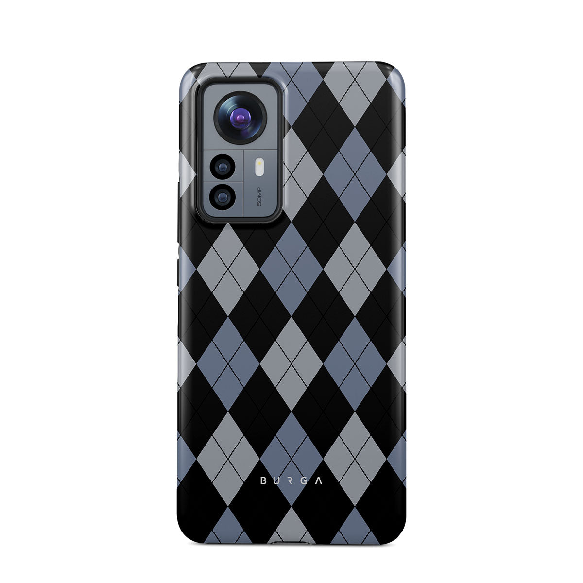 Discover our Trouble Xiaomi 12 phone case design—a classic argyle pattern featuring stark black diamonds that seamlessly blend with two distinct shades of blue. Made for those who respect the classics but aren't afraid to disrupt the norm.