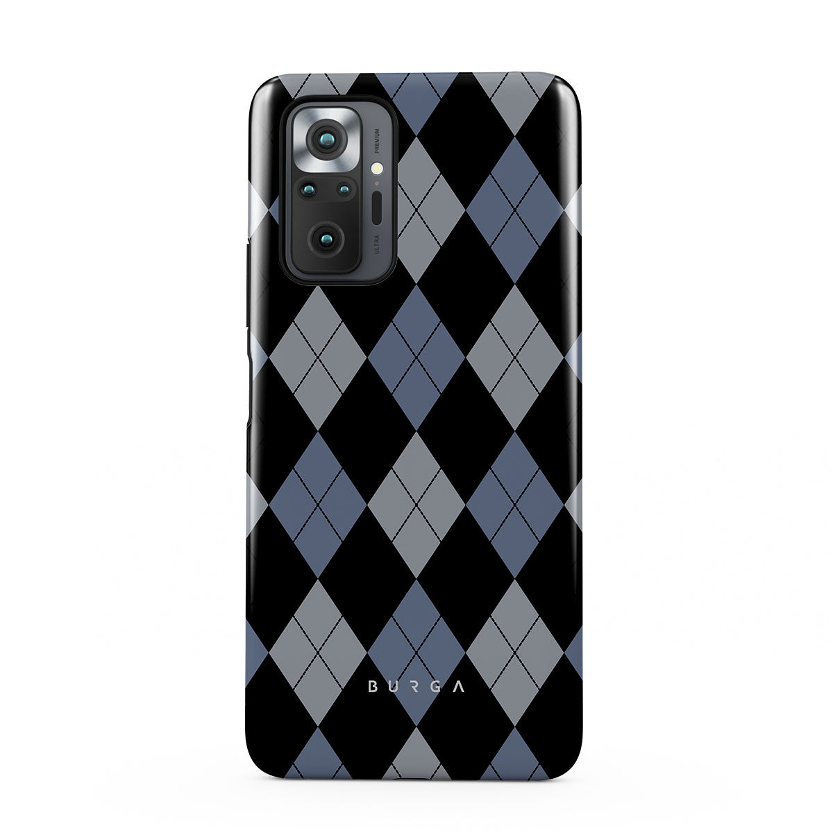 Discover our Trouble Xiaomi Redmi Note 10 Pro phone case design—a classic argyle pattern featuring stark black diamonds that seamlessly blend with two distinct shades of blue. Made for those who respect the classics but aren't afraid to disrupt the norm.