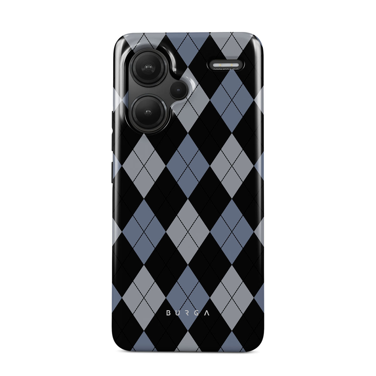 Discover our Trouble Xiaomi Redmi Note 13 Pro+ 5G phone case design—a classic argyle pattern featuring stark black diamonds that seamlessly blend with two distinct shades of blue. Made for those who respect the classics but aren't afraid to disrupt the norm.
