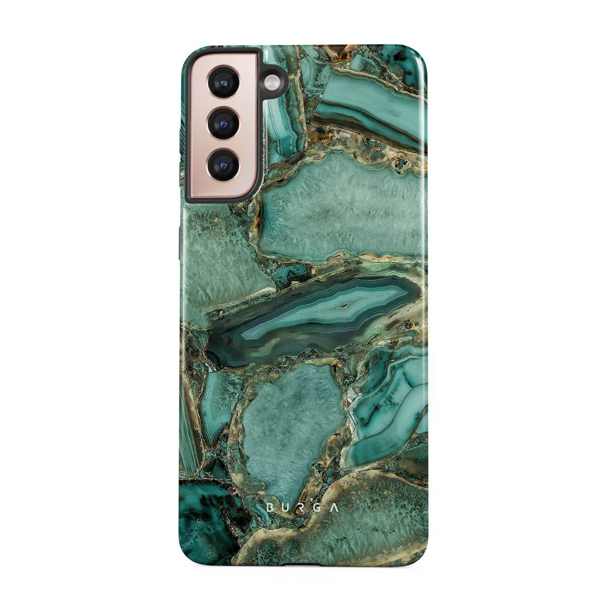 Marble meets geode look in our durable Ubud Jungle Samsung Galaxy S21 Plus phone case. You can rest sure that our stunning turquoise phone case will protect your device from any unexpected falls while adding a dreamy touch to your style.