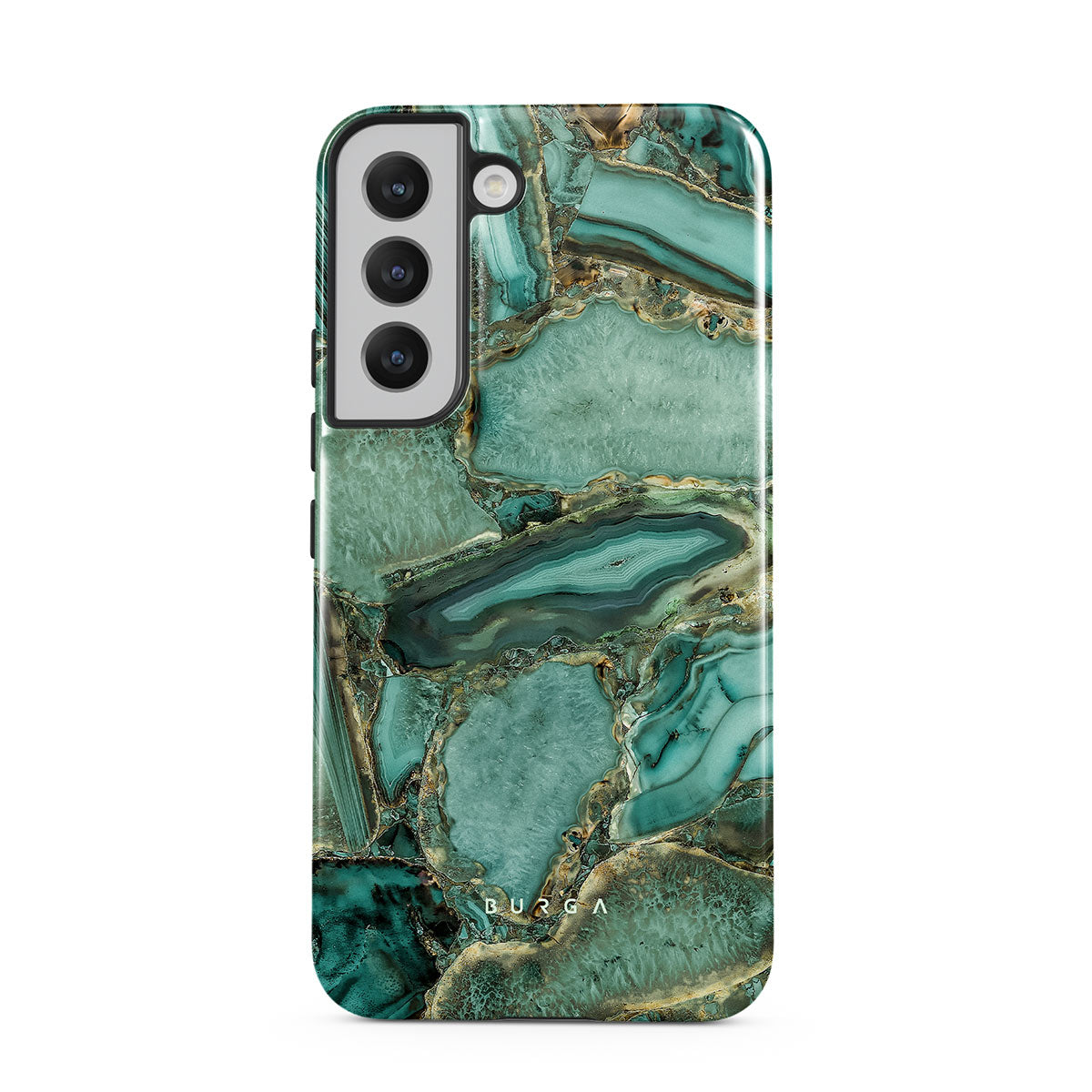 Marble meets geode look in our durable Ubud Jungle Samsung Galaxy S22 Plus phone case. You can rest sure that our stunning turquoise phone case will protect your device from any unexpected falls while adding a dreamy touch to your style.