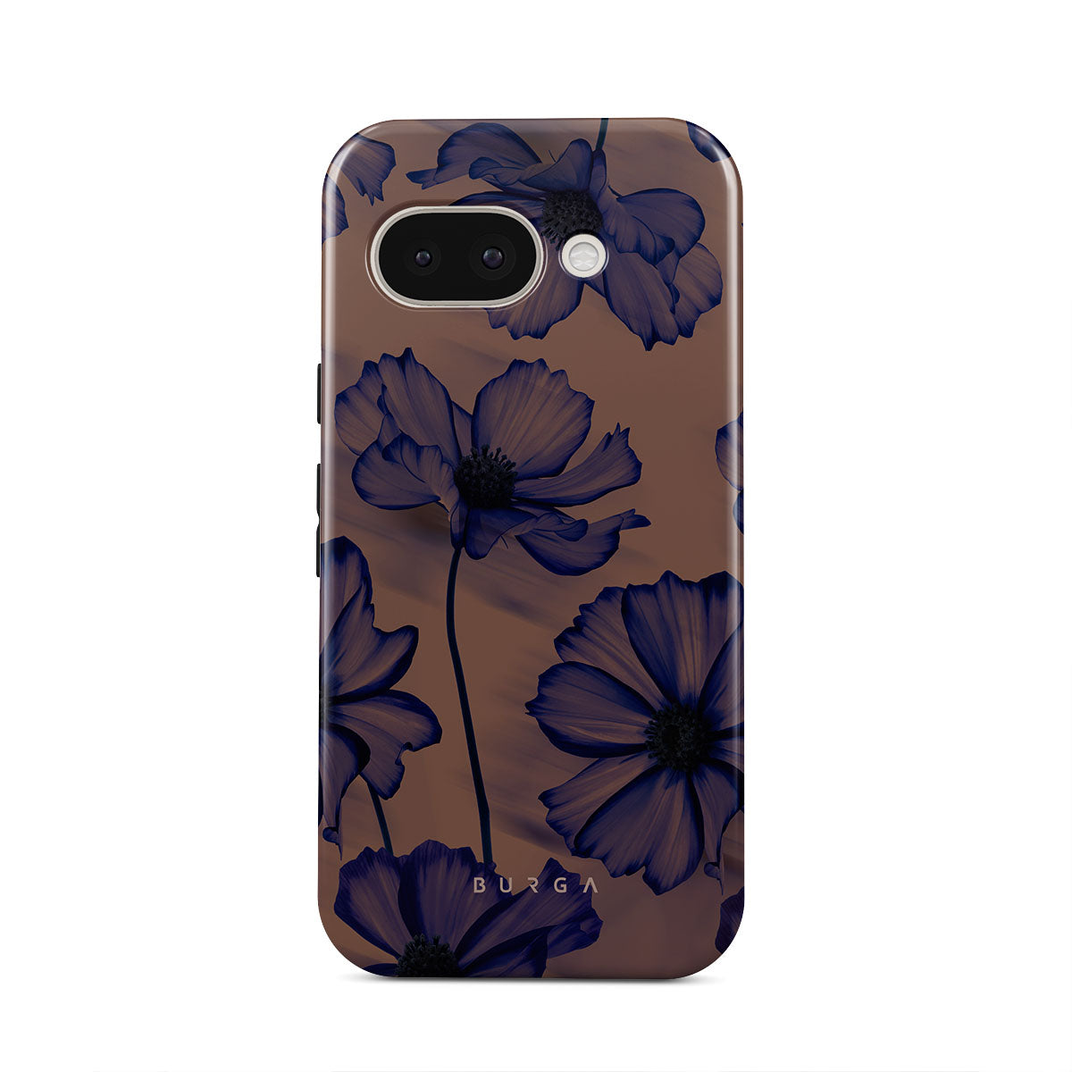 Discover our Velvet Night design. On a soft nude backdrop, blue poppies dance in the untamed rhythm of the wind. A blend of night's peace and daring energy, this Google Pixel 9a phone case is perfect for those who dream big and seek adventure.