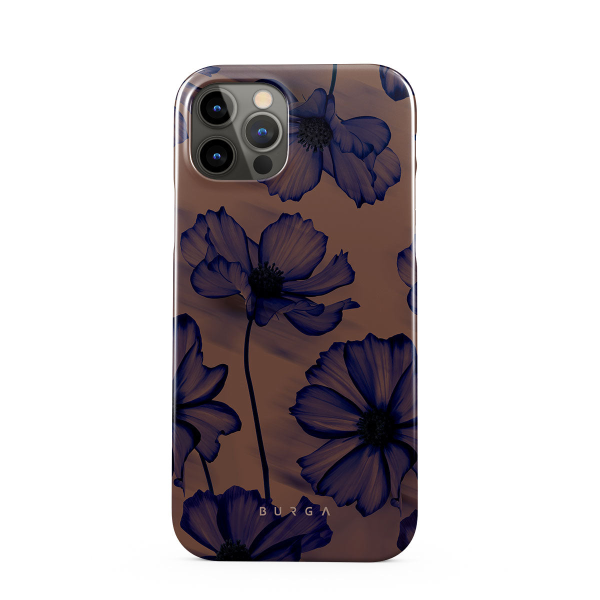 Discover our Velvet Night design. On a soft nude backdrop, blue poppies dance in the untamed rhythm of the wind. A blend of night's peace and daring energy, this iPhone 12 Pro Max phone case is perfect for those who dream big and seek adventure.