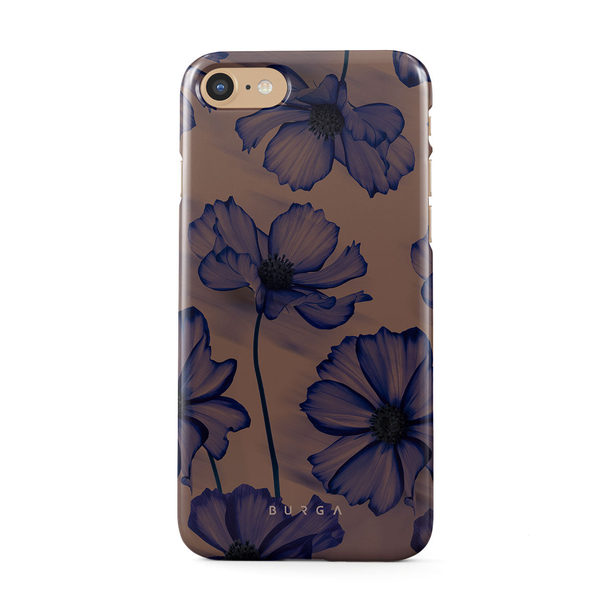 Discover our Velvet Night design. On a soft nude backdrop, blue poppies dance in the untamed rhythm of the wind. A blend of night's peace and daring energy, this iPhone SE (2020) phone case is perfect for those who dream big and seek adventure.