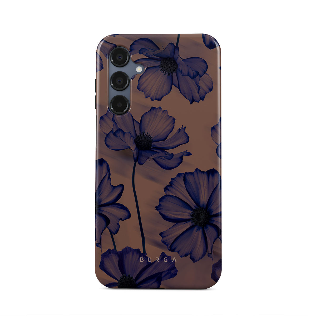 Discover our Velvet Night design. On a soft nude backdrop, blue poppies dance in the untamed rhythm of the wind. A blend of night's peace and daring energy, this Samsung Galaxy A16 phone case is perfect for those who dream big and seek adventure.