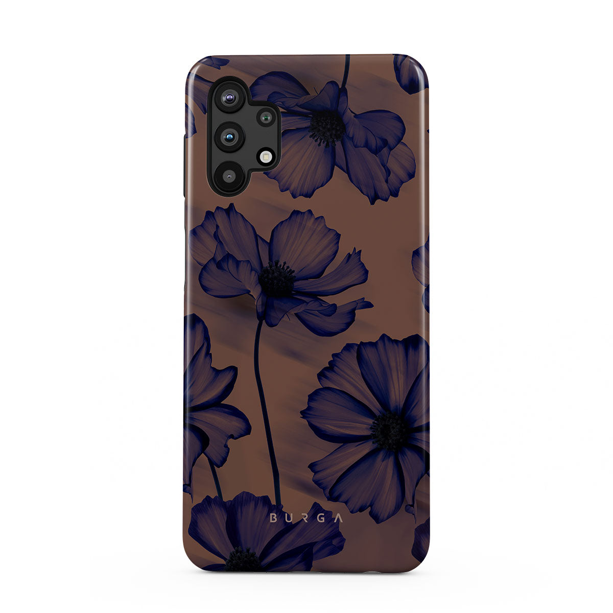 Discover our Velvet Night design. On a soft nude backdrop, blue poppies dance in the untamed rhythm of the wind. A blend of night's peace and daring energy, this Samsung Galaxy A32 5G phone case is perfect for those who dream big and seek adventure.