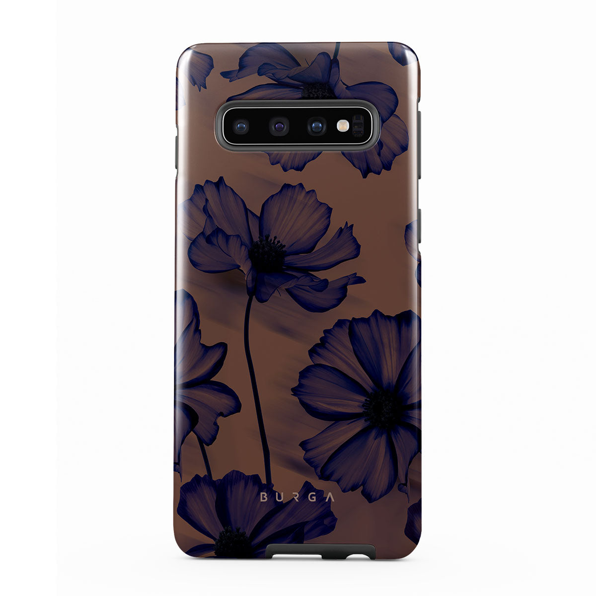 Discover our Velvet Night design. On a soft nude backdrop, blue poppies dance in the untamed rhythm of the wind. A blend of night's peace and daring energy, this Samsung Galaxy S10 4G phone case is perfect for those who dream big and seek adventure.