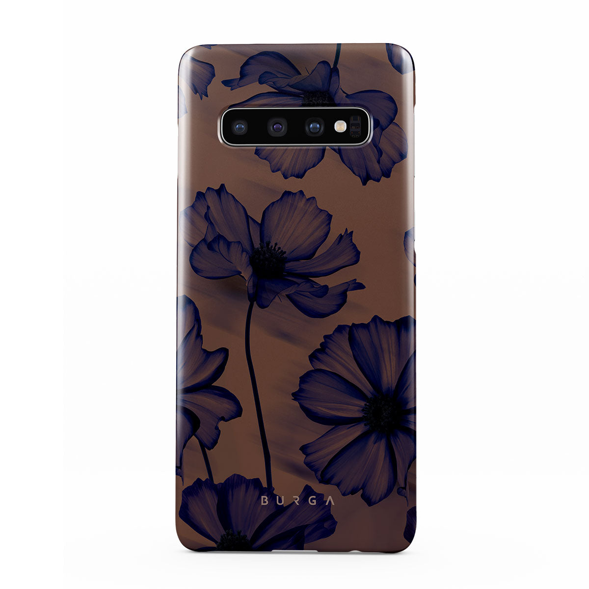 Discover our Velvet Night design. On a soft nude backdrop, blue poppies dance in the untamed rhythm of the wind. A blend of night's peace and daring energy, this Samsung Galaxy S10 Plus phone case is perfect for those who dream big and seek adventure.
