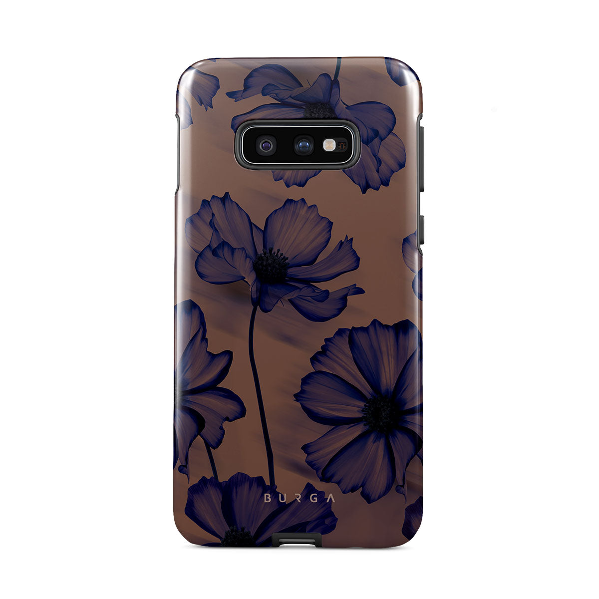Discover our Velvet Night design. On a soft nude backdrop, blue poppies dance in the untamed rhythm of the wind. A blend of night's peace and daring energy, this Samsung Galaxy S10E phone case is perfect for those who dream big and seek adventure.