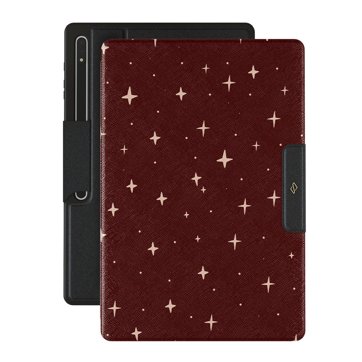 Drenched in radiant red and sprinkled with the sparkle of golden stars. It's like the holiday spirit transformed into art. Meet Very Merry Samsung Galaxy Tab S9 Ultra folio case - a timeless design perfect for everything from festive parties to daily errands.