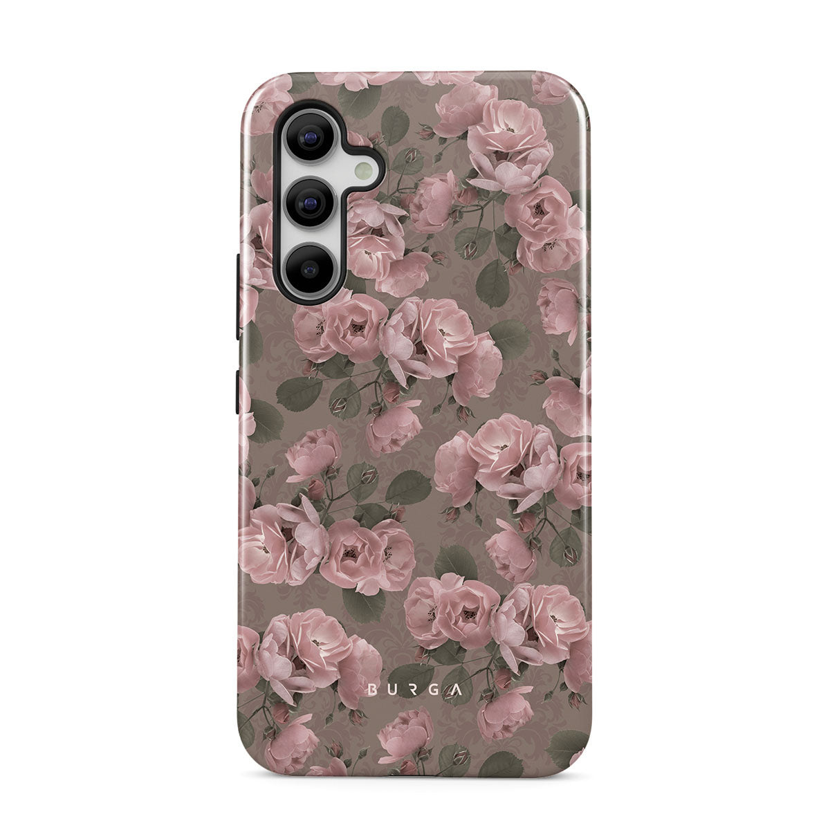 Blush, blooming roses transport you to an era of silent film stars and secret gardens. Our sophisticated Vintage Glamour Samsung Galaxy A55 phone case design is perfect for the romantic at heart. It's for those who speak in glances and sighs and find comfort in the nostalgic whispers of floral romance.