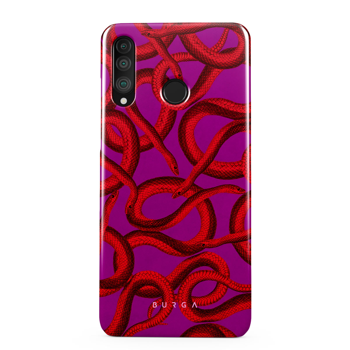 Watch Out Huawei P30 Lite phone case design offers a fierce feel with a bright magenta colored background covered in red snakes pattern. Make a statement while protecting your phone, as this case is guaranteed to catch everyone's eye.