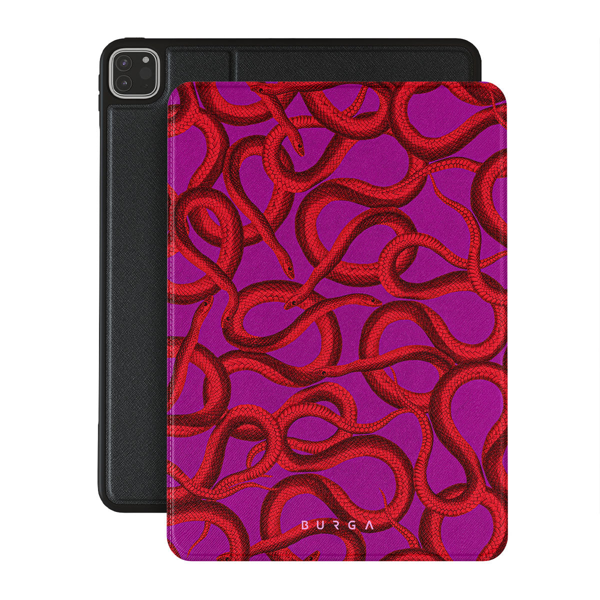 Watch Out iPad Pro 11 (4th/3rd Gen) folio case design offers a fierce feel with a bright magenta colored background covered in red snakes pattern. Make a statement while protecting your iPad, as this case is guaranteed to catch everyone's eye.