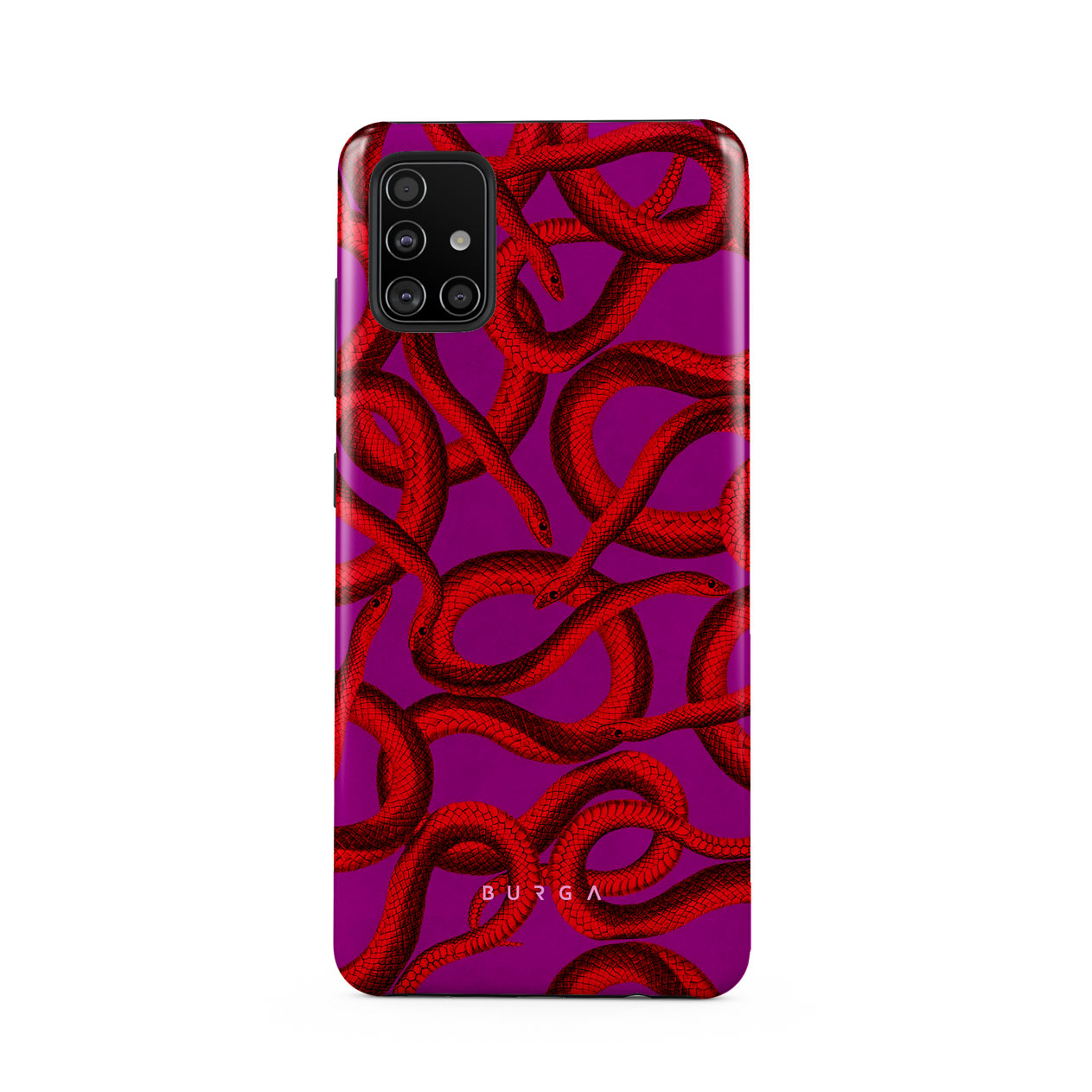 Watch Out Samsung Galaxy A51 phone case design offers a fierce feel with a bright magenta colored background covered in red snakes pattern. Make a statement while protecting your phone, as this case is guaranteed to catch everyone's eye.