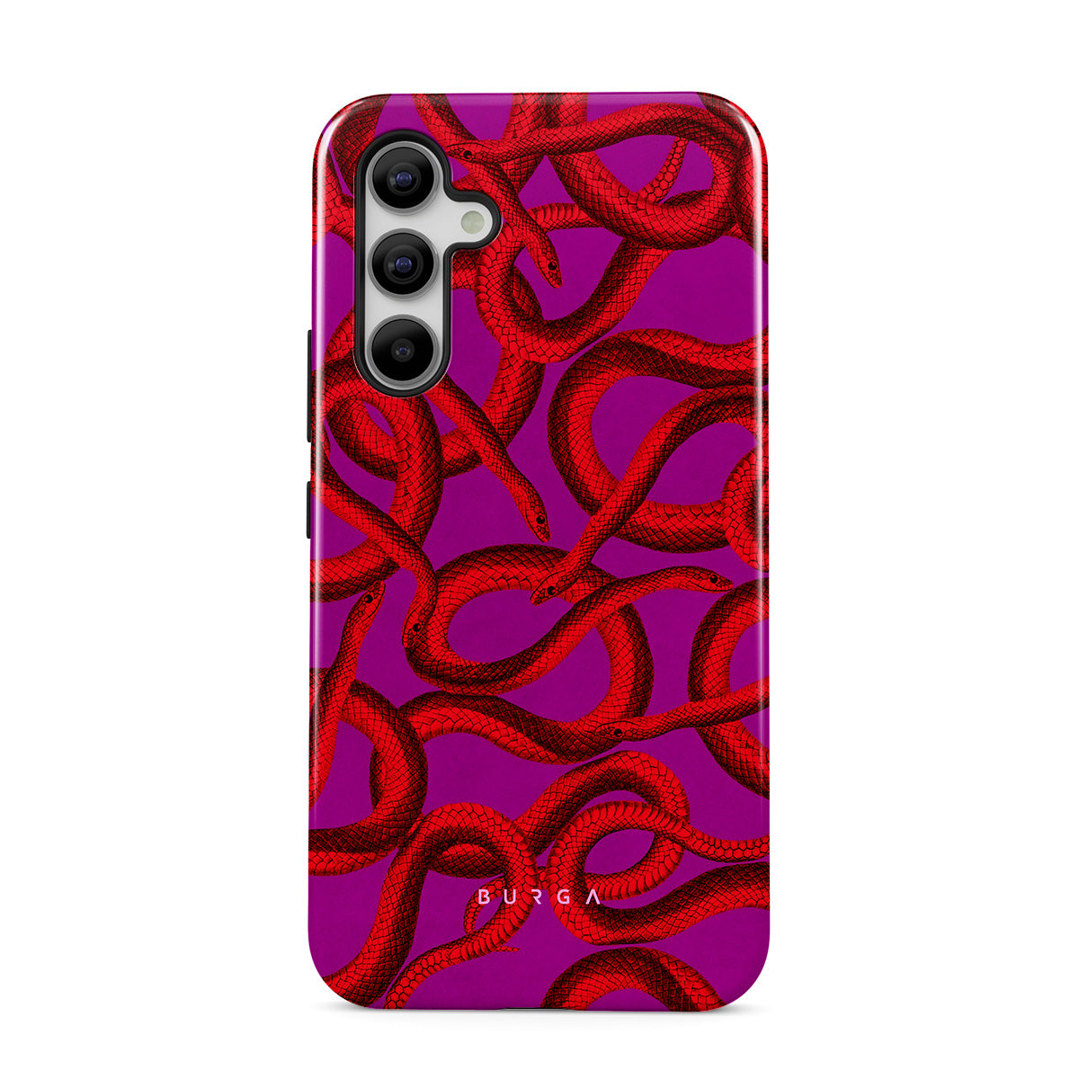 Watch Out Samsung Galaxy A51 phone case design offers a fierce feel with a bright magenta colored background covered in red snakes pattern. Make a statement while protecting your phone, as this case is guaranteed to catch everyone's eye.