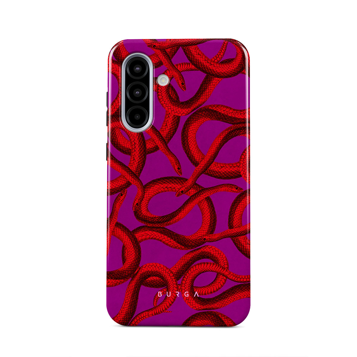 Watch Out Samsung Galaxy A56 5G phone case design offers a fierce feel with a bright magenta colored background covered in red snakes pattern. Make a statement while protecting your phone, as this case is guaranteed to catch everyone's eye.