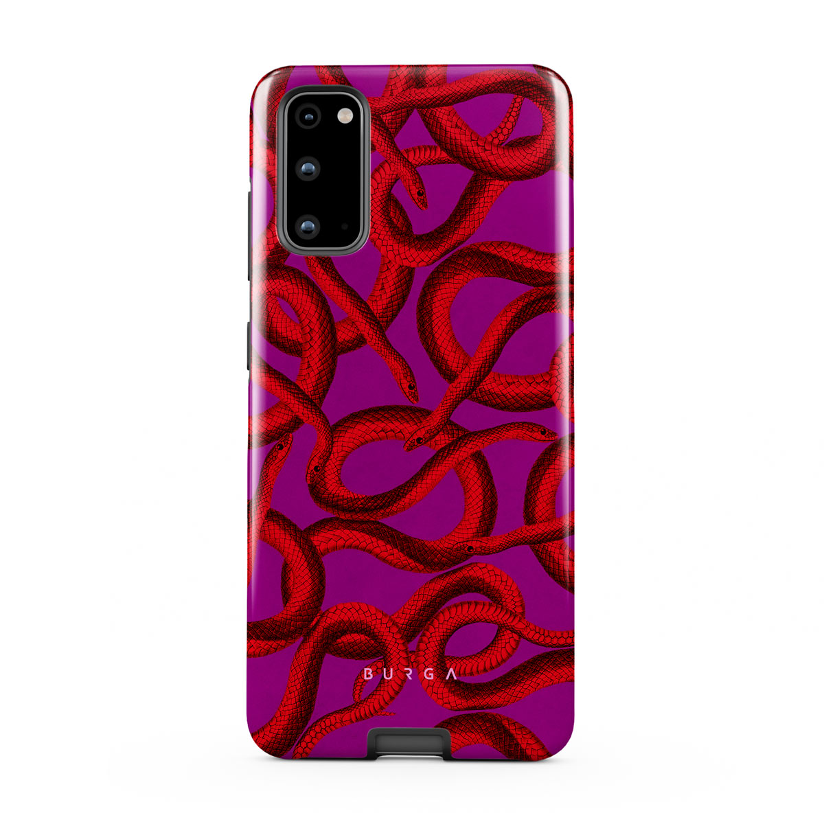 Watch Out Samsung Galaxy S20 FE 4G / 5G phone case design offers a fierce feel with a bright magenta colored background covered in red snakes pattern. Make a statement while protecting your phone, as this case is guaranteed to catch everyone's eye.