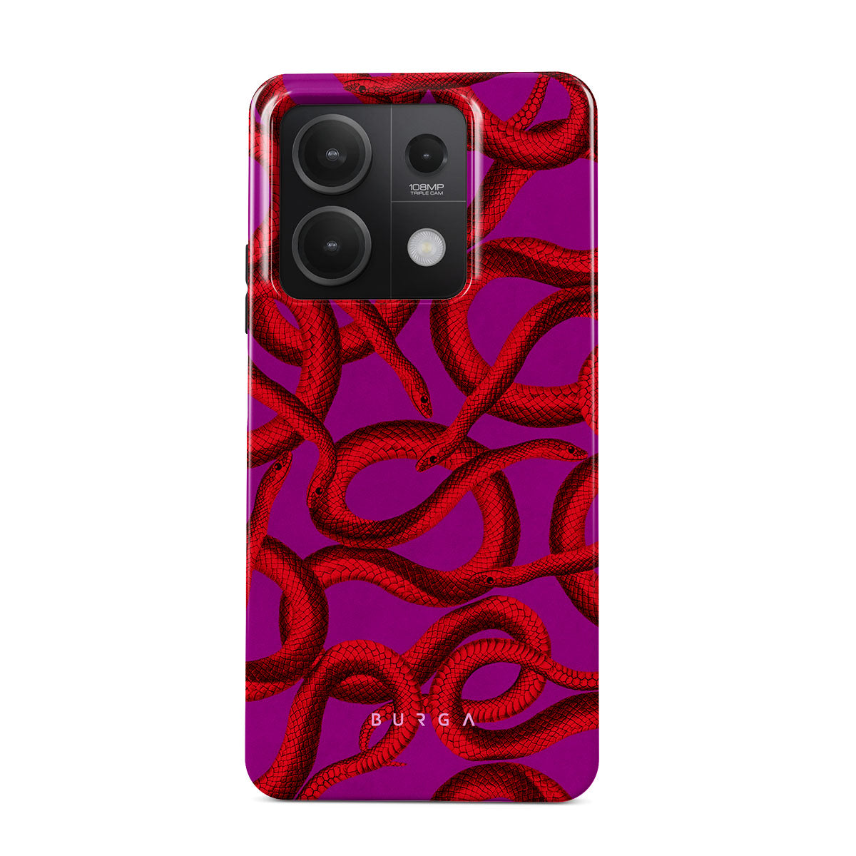 Watch Out Xiaomi Redmi Note 13 5G phone case design offers a fierce feel with a bright magenta colored background covered in red snakes pattern. Make a statement while protecting your phone, as this case is guaranteed to catch everyone's eye.