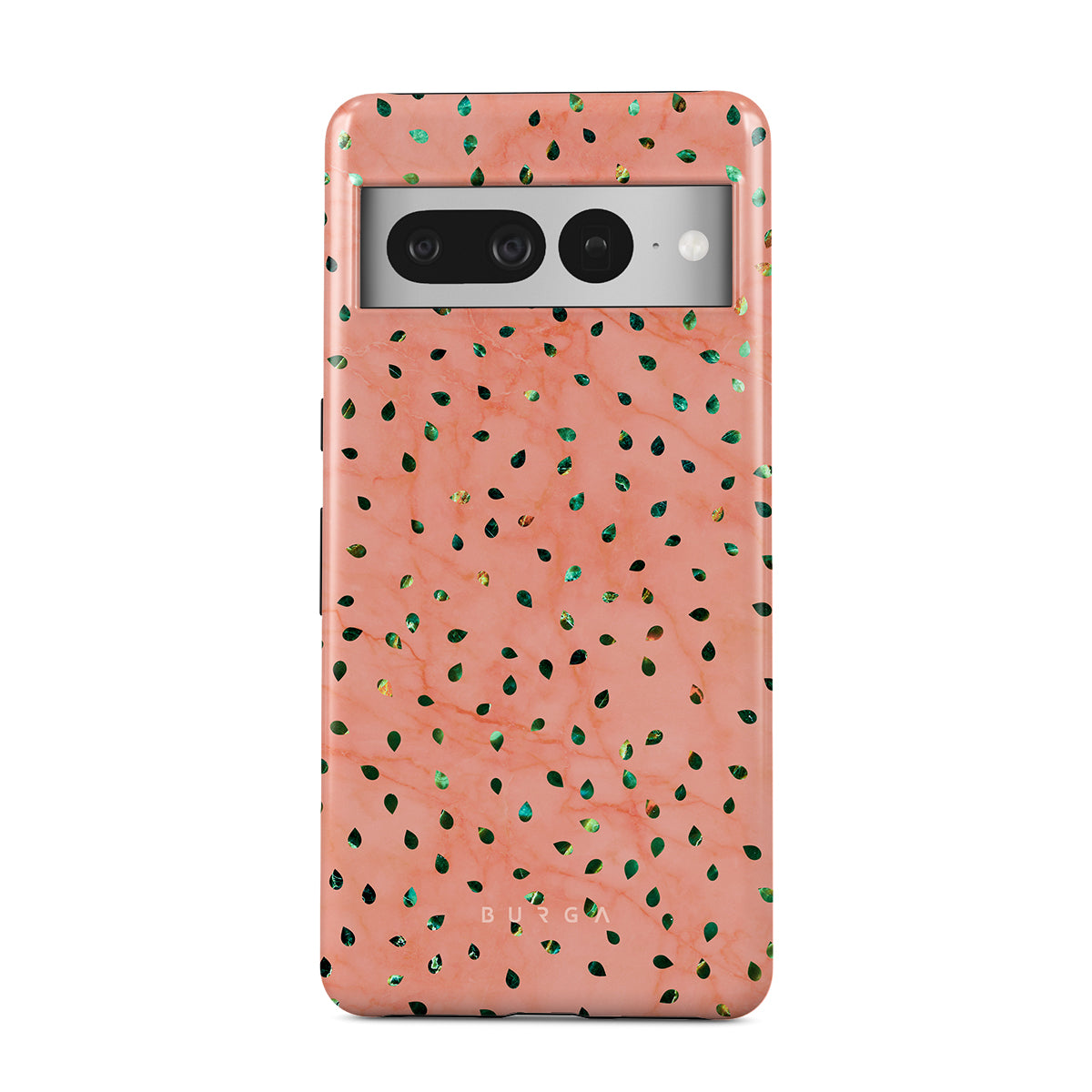 The Watermelon Shake Google Pixel 7 Pro phone case offers a playful take on design merging. The watermelon seed-like specks showcase striking tropical design fragments that add a splash of color to the fresh and breezy coral pink marble. This way, the funny protective phone cover becomes a perfect statement piece for your summer outfits.