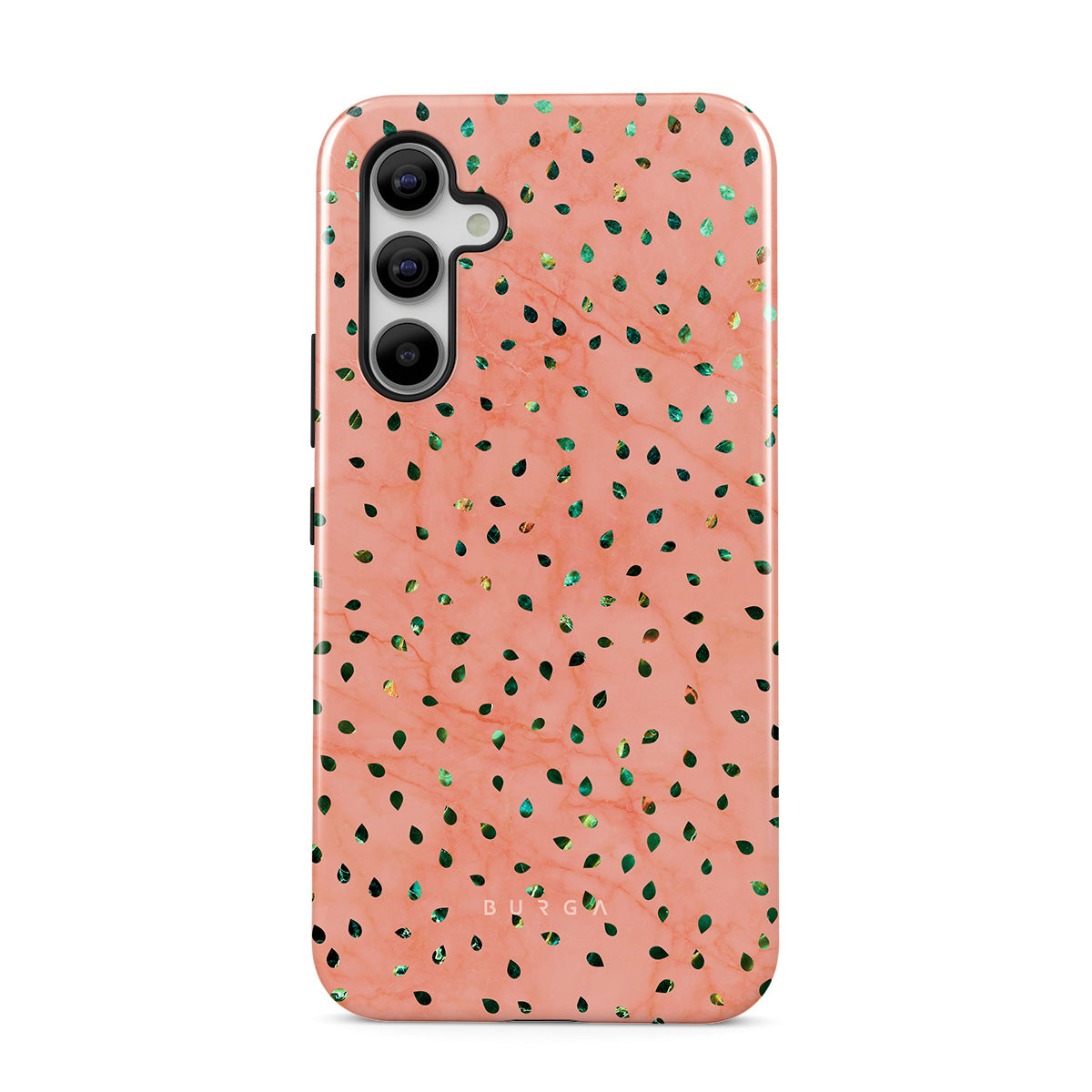 The Watermelon Shake Samsung Galaxy A51 phone case offers a playful take on design merging. The watermelon seed-like specks showcase striking tropical design fragments that add a splash of color to the fresh and breezy coral pink marble. This way, the funny protective phone cover becomes a perfect statement piece for your summer outfits.