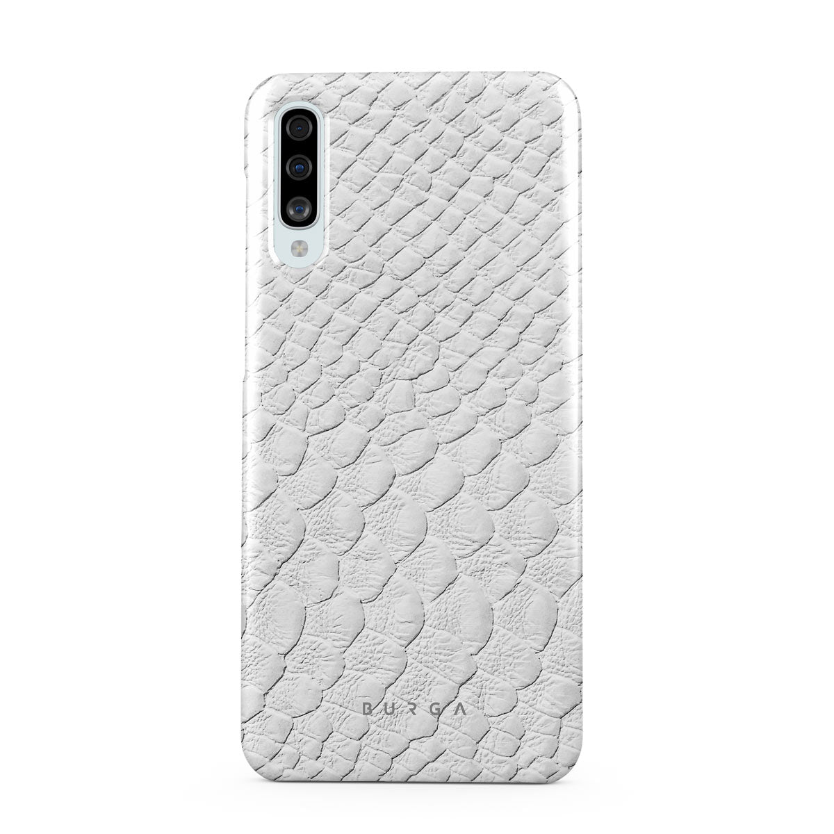 Glacial Desert Samsung Galaxy A50 phone case features snakeskin design in glacial white color. The dangerous animal print will add confidence and a touch of luxury to your style while transforming your phone into a fashion accessory.