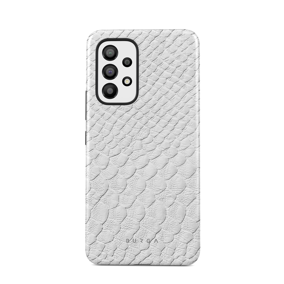 Glacial Desert Samsung Galaxy A53 phone case features snakeskin design in glacial white color. The dangerous animal print will add confidence and a touch of luxury to your style while transforming your phone into a fashion accessory.