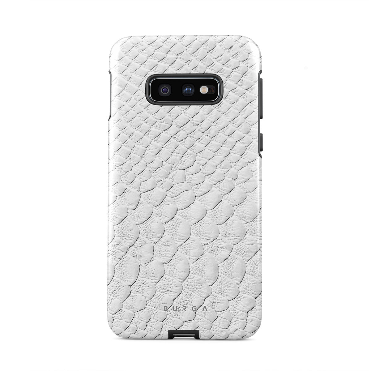 Glacial Desert Samsung Galaxy S10E phone case features snakeskin design in glacial white color. The dangerous animal print will add confidence and a touch of luxury to your style while transforming your phone into a fashion accessory.