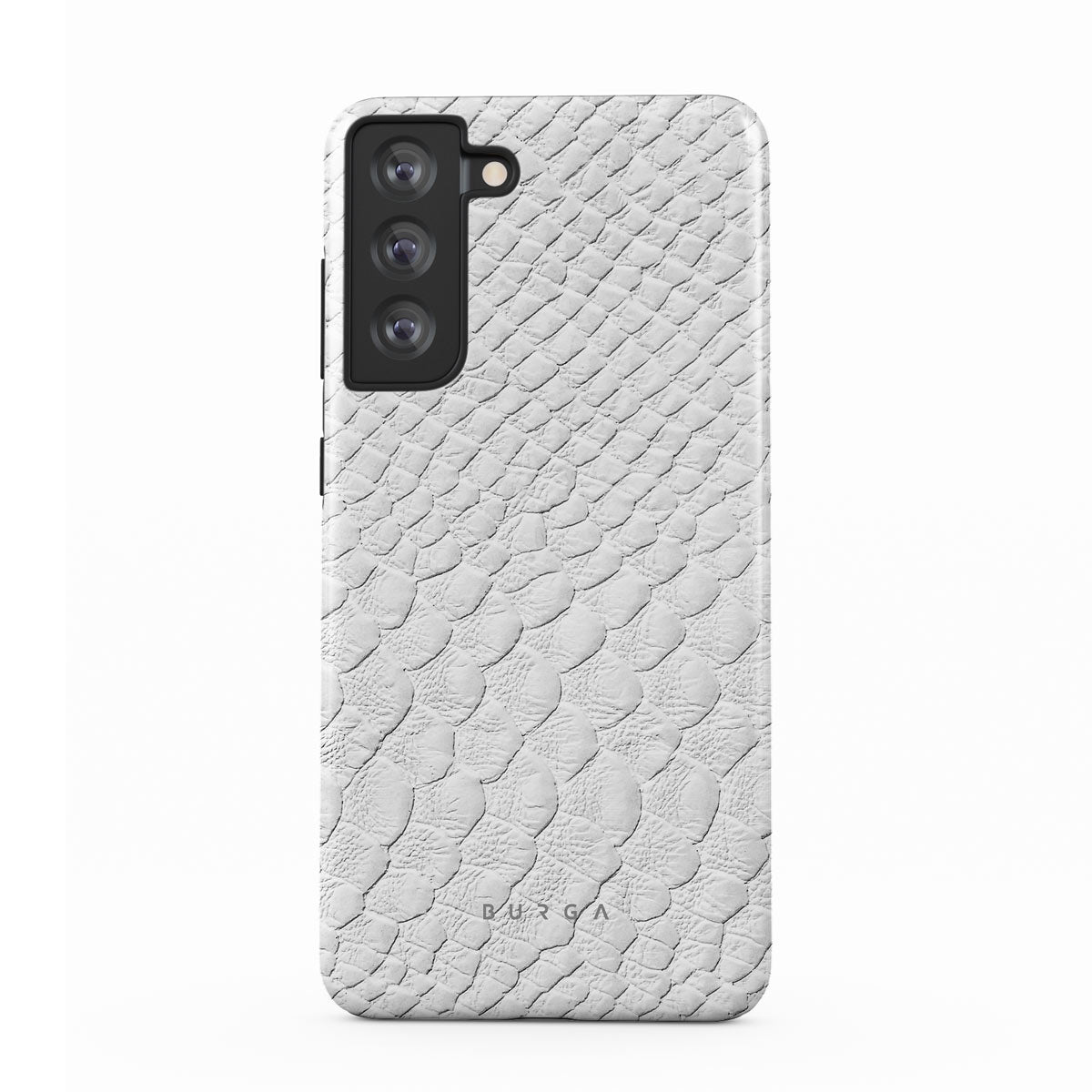 Glacial Desert Samsung Galaxy S21 FE phone case features snakeskin design in glacial white color. The dangerous animal print will add confidence and a touch of luxury to your style while transforming your phone into a fashion accessory.