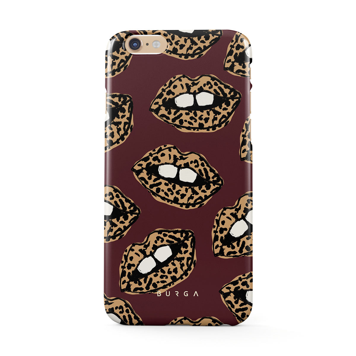 This design features: leopard print, lips, open lips, colored lips