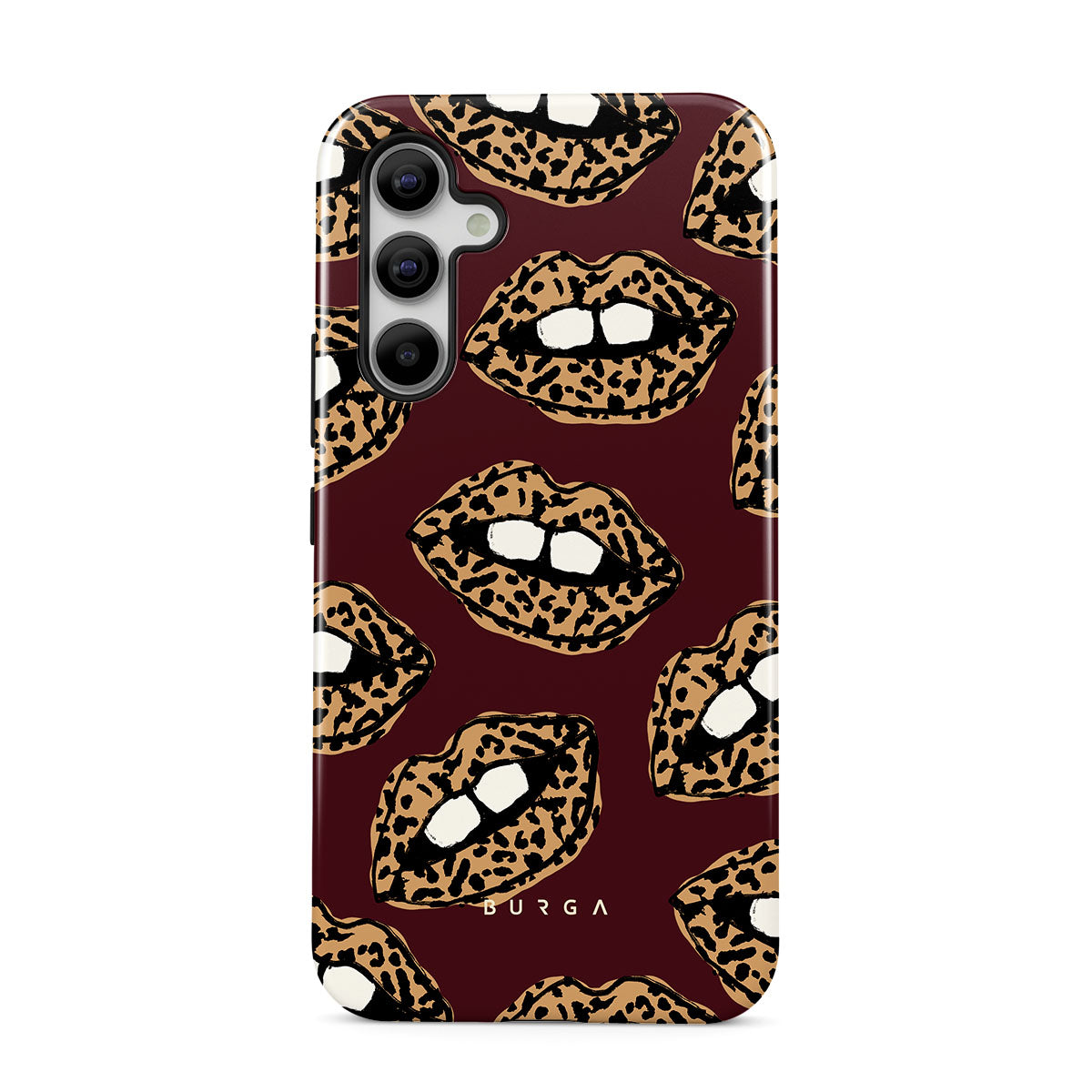 This design features: leopard print, lips, open lips, colored lips
