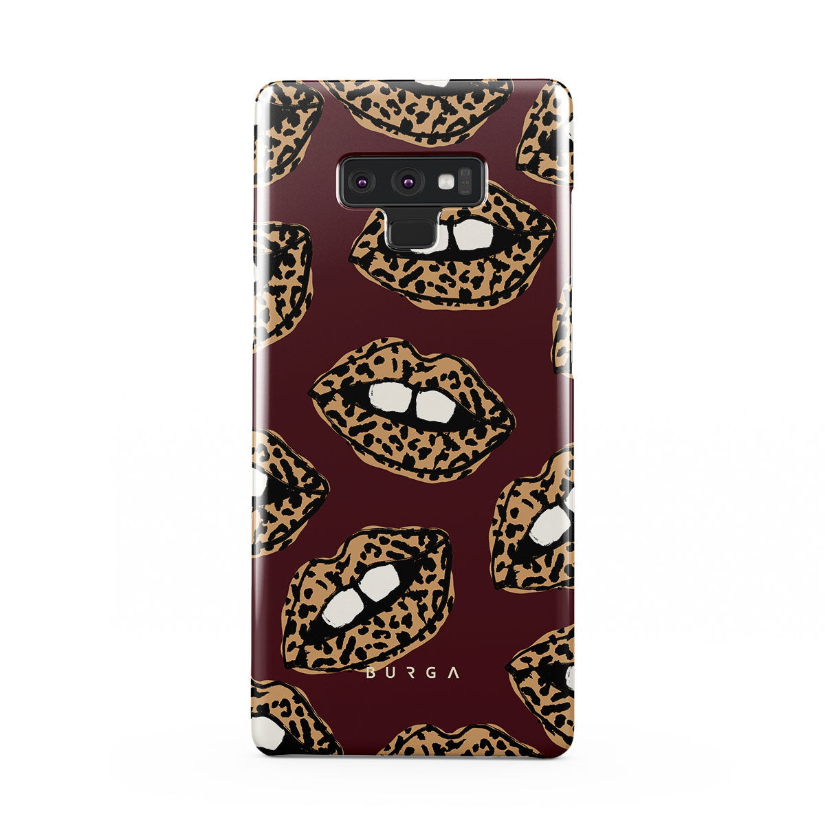 This design features: leopard print, lips, open lips, colored lips