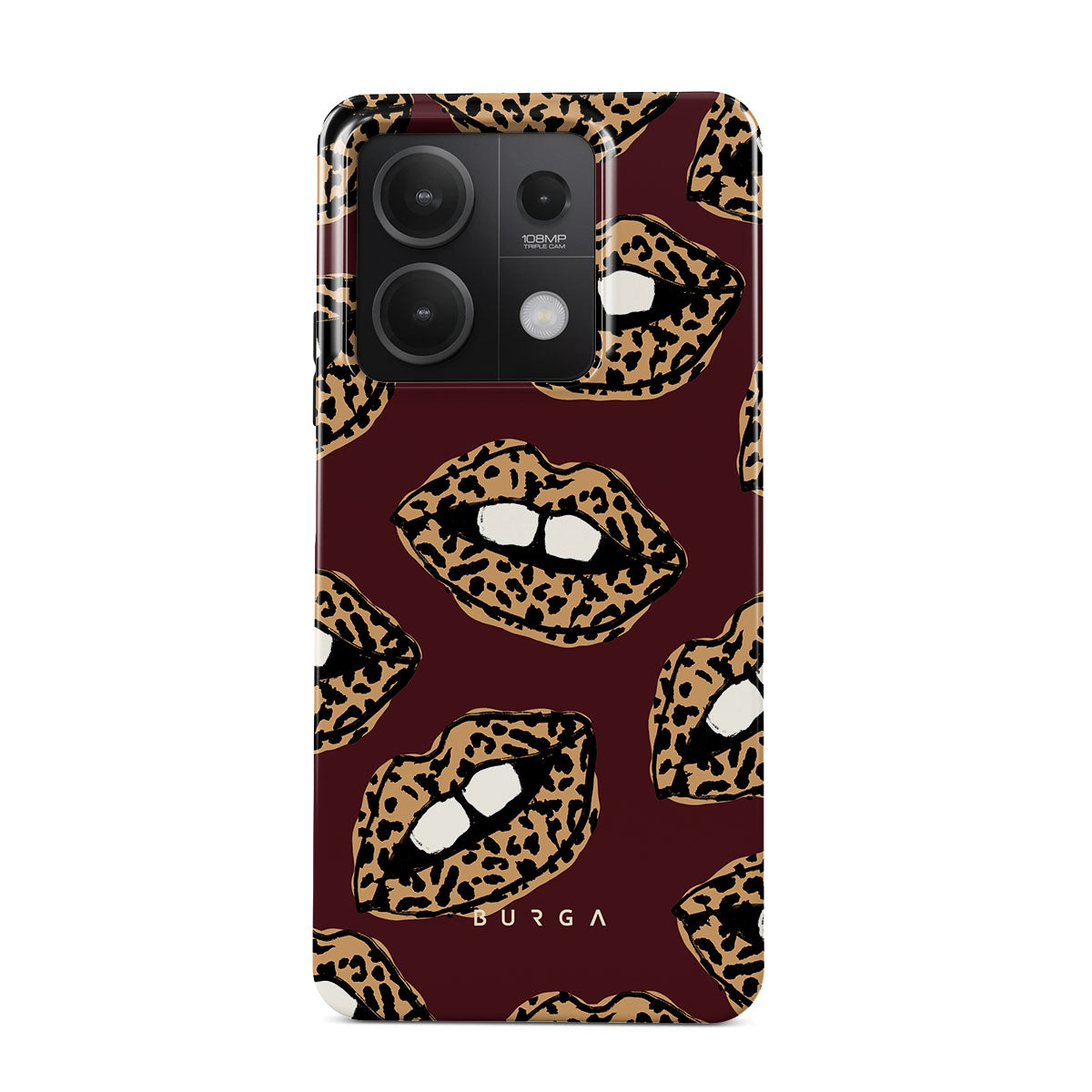 This design features: leopard print, lips, open lips, colored lips