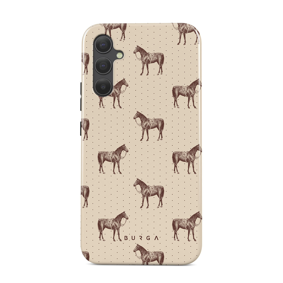 Life might feel like the Wild West sometimes, but your look can still be on point. With beautiful horses on a classic nude background, this Samsung Galaxy A34 phone case design is the one for those who ride free and stylish.