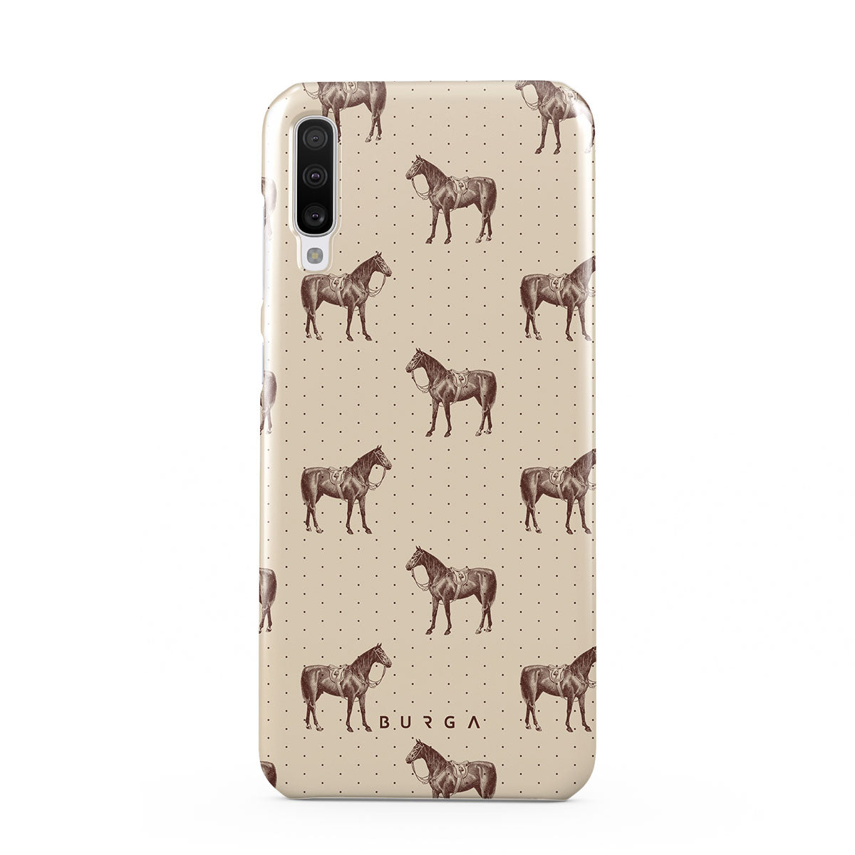 Life might feel like the Wild West sometimes, but your look can still be on point. With beautiful horses on a classic nude background, this Samsung Galaxy A70 phone case design is the one for those who ride free and stylish.