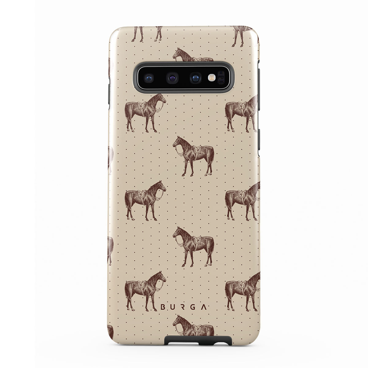 Life might feel like the Wild West sometimes, but your look can still be on point. With beautiful horses on a classic nude background, this Samsung Galaxy S10 4G phone case design is the one for those who ride free and stylish.