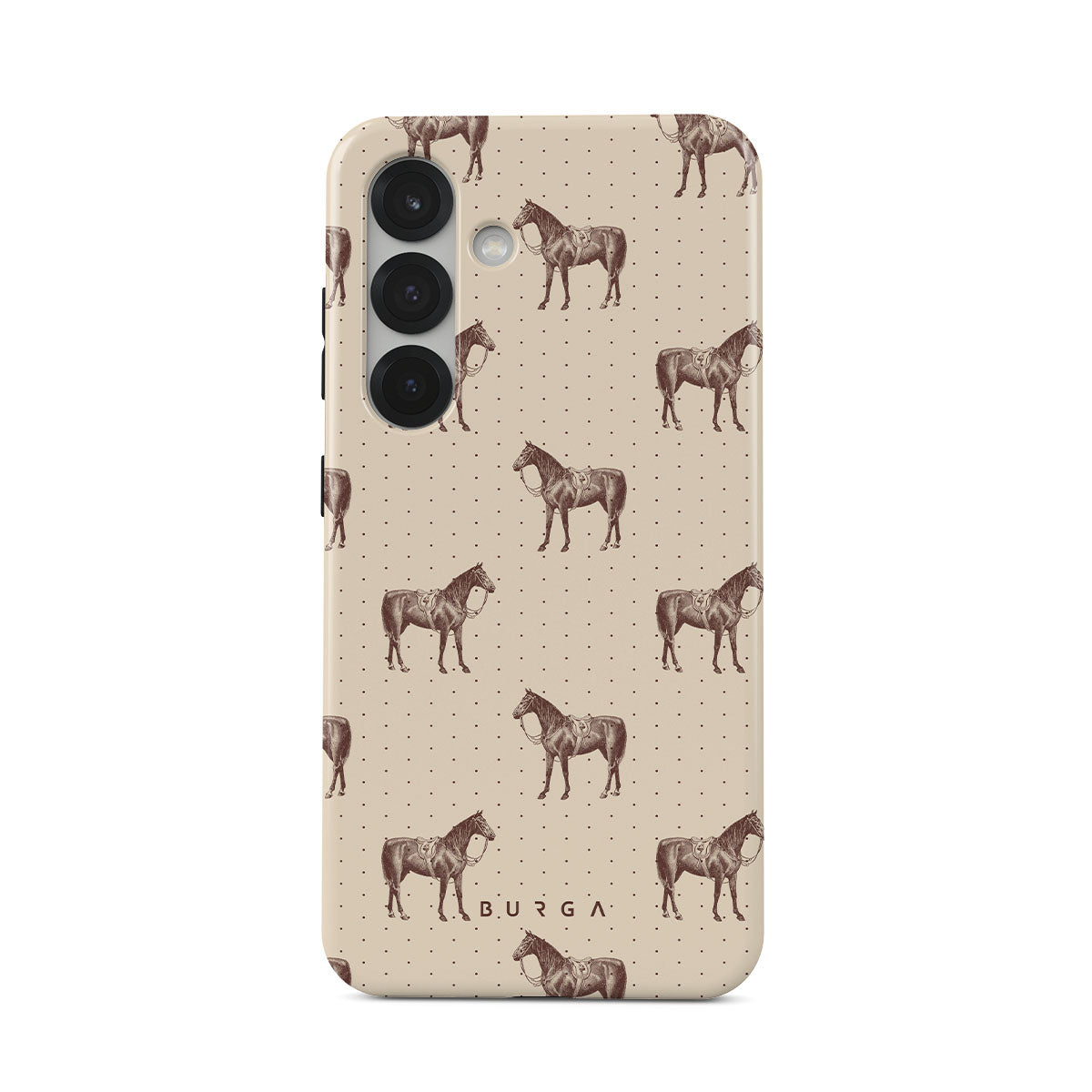 Life might feel like the Wild West sometimes, but your look can still be on point. With beautiful horses on a classic nude background, this Samsung Galaxy S25 Plus phone case design is the one for those who ride free and stylish.