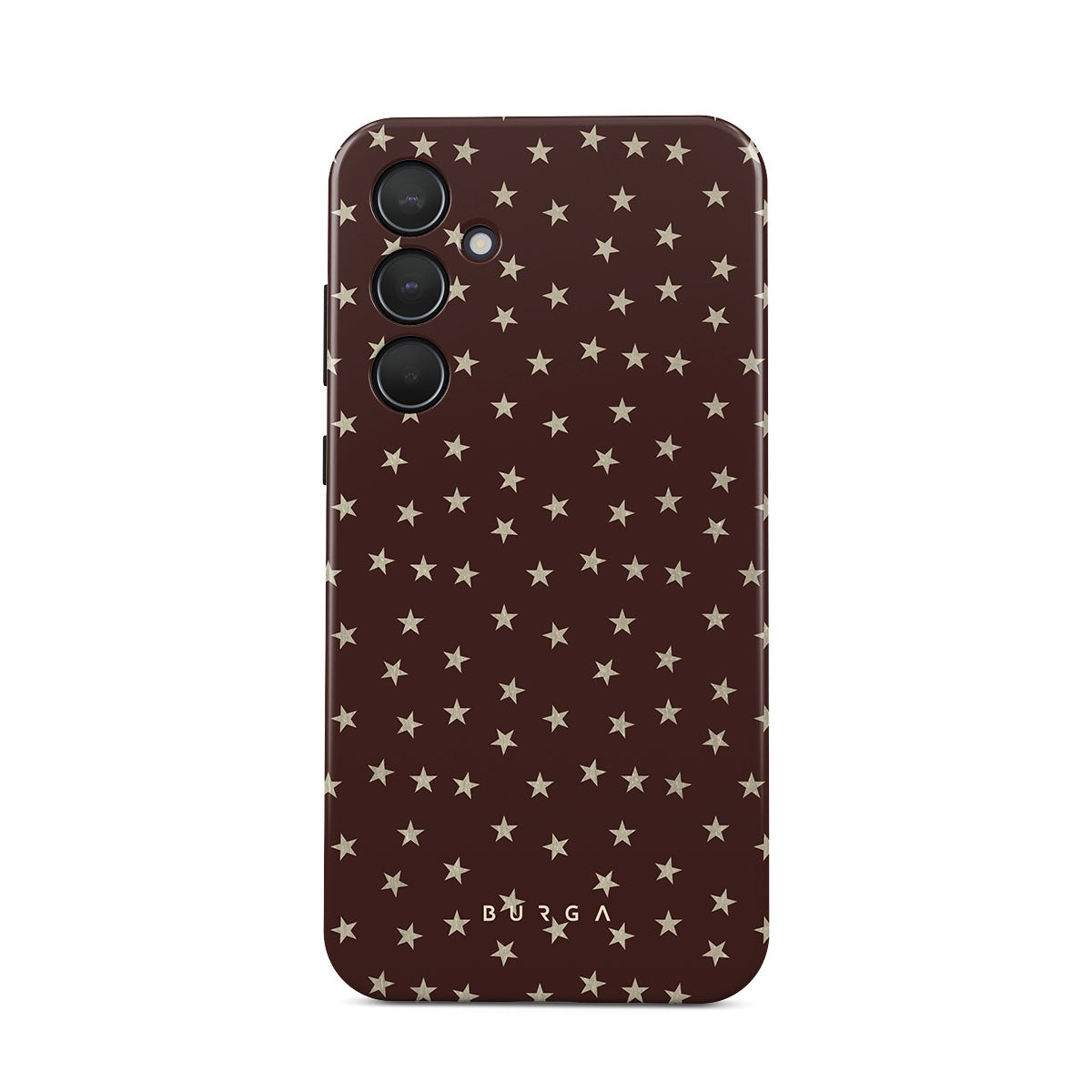 Our Wonderland Samsung Galaxy A35 phone case design glistens like a frosty winter night, where the magic of the season lights up the sky. Step into a snowfall of stars with every glance.