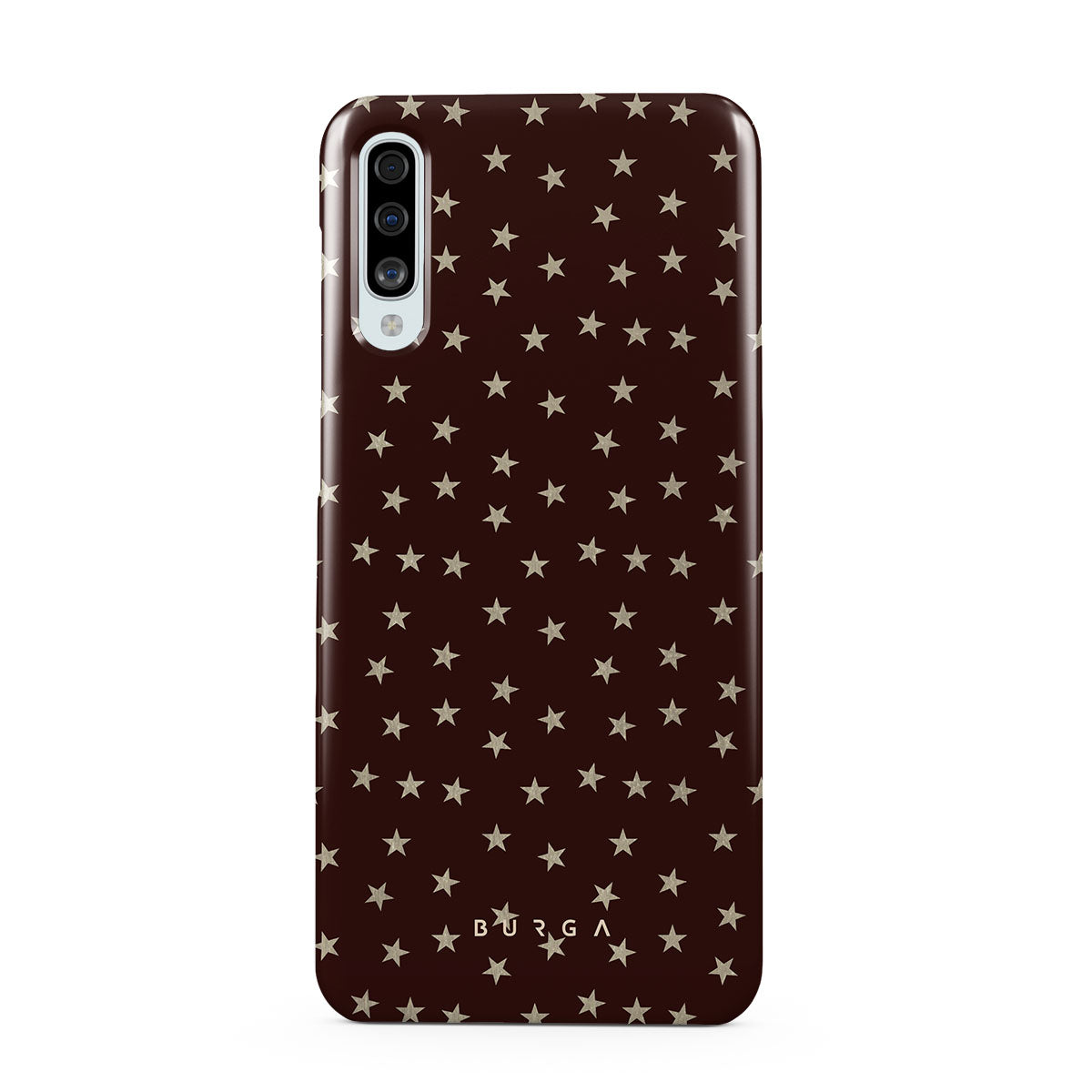 Our Wonderland Samsung Galaxy A50 phone case design glistens like a frosty winter night, where the magic of the season lights up the sky. Step into a snowfall of stars with every glance.