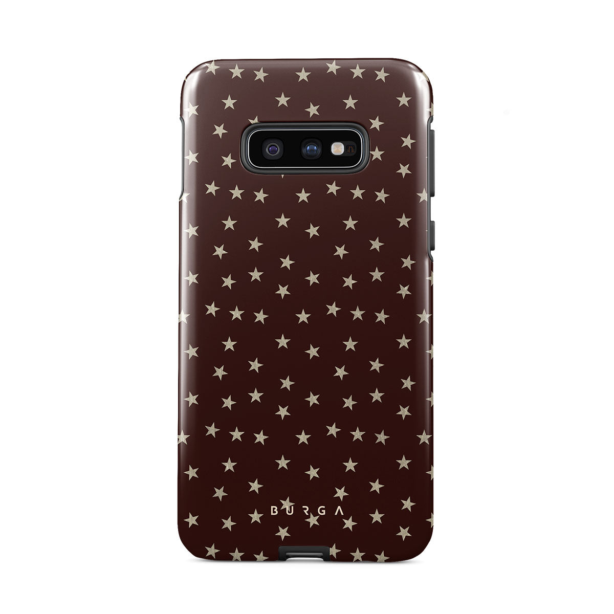 Our Wonderland Samsung Galaxy S10E phone case design glistens like a frosty winter night, where the magic of the season lights up the sky. Step into a snowfall of stars with every glance.