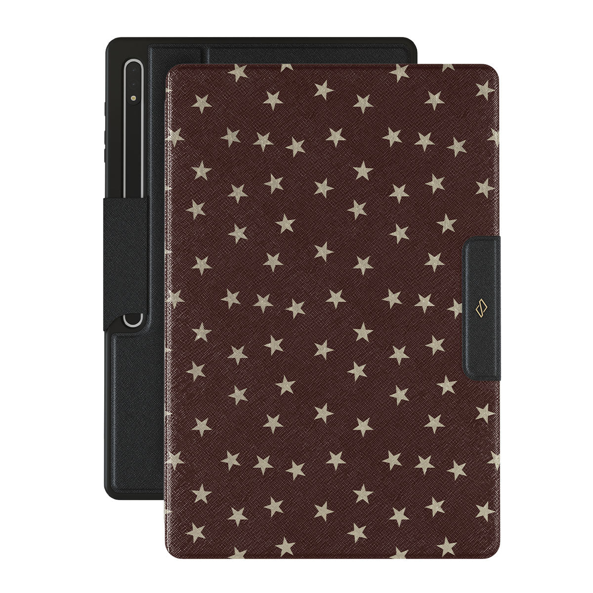 Our Wonderland Samsung Galaxy Tab S10 Ultra folio case design glistens like a frosty winter night, where the magic of the season lights up the sky. Step into a snowfall of stars with every glance.