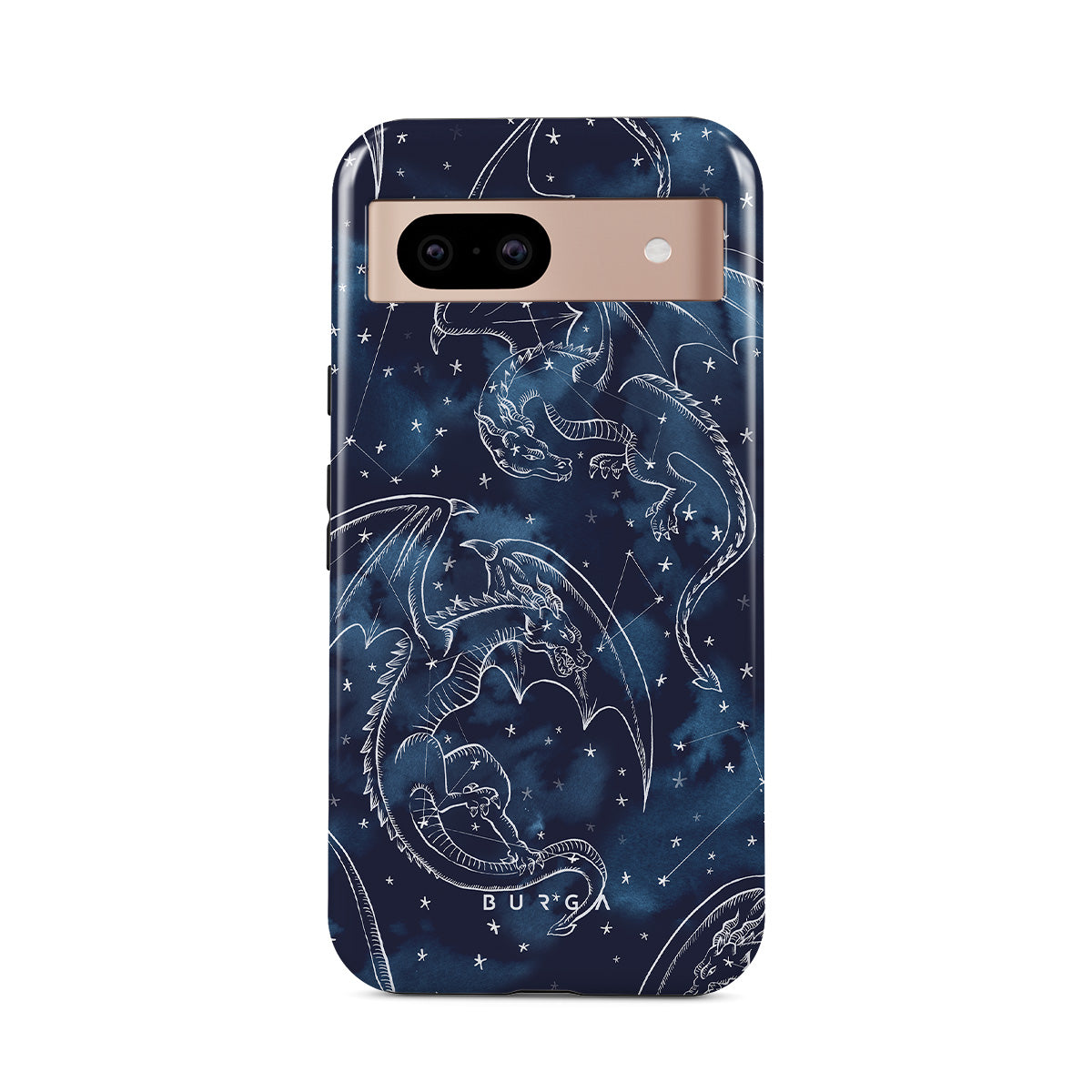 Dragons carved in starlight = fierce guardians of destinies you cannot outrun. This Google Pixel 8a phone case design is no quiet omen.
