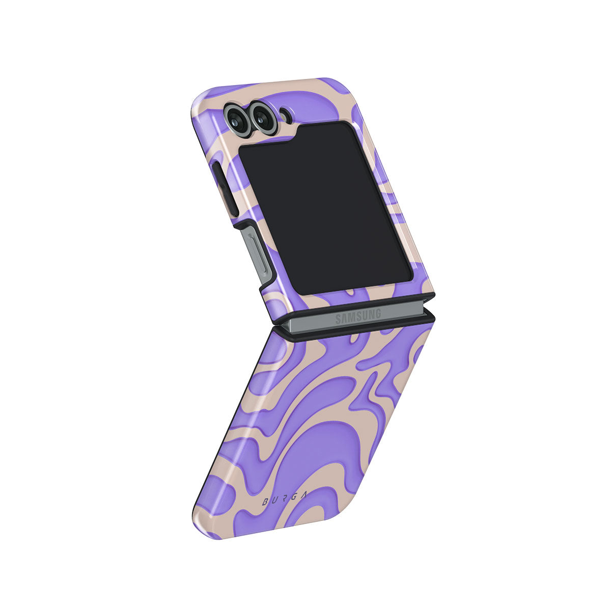 With a blend of retro and contemporary style, the Y2Kool Samsung Galaxy Z Flip 6 phone case is the perfect accessory for anyone looking to make a statement. Drawing inspiration from the colorful and vibrant Y2K era, this case features pastel-toned metallic purple swirls that evoke memories of butterfly hair clips, platform shoes, and boy bands.