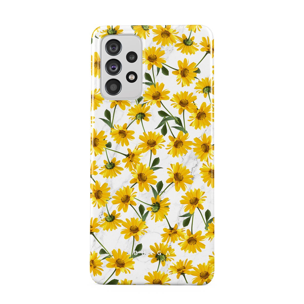 Little suns, little suns all around. Take the light of the summer whenever you go with the pretty pattern of the yellow flowers on your Samsung Galaxy A72 phone case to brighten your week, day, or a minute. A splash of color and heavy-duty protection is a perfect combo for your phone.