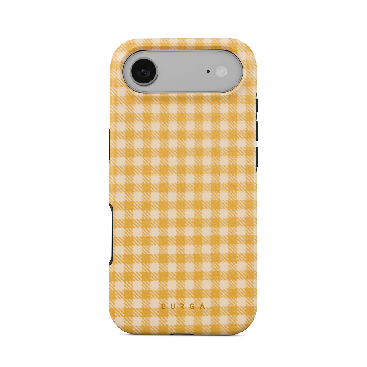 Always fashionable and always inviting, the Preppy Vichy fabric returns in our Tuscan Sun iPhone Air phone case. The brightness and warmth of this enchanting yellow plaid design indeed remind us of the always generous Tuscan Sun. You can add a piece of this playful squares pattern with you while keeping your phone out of harm's way!