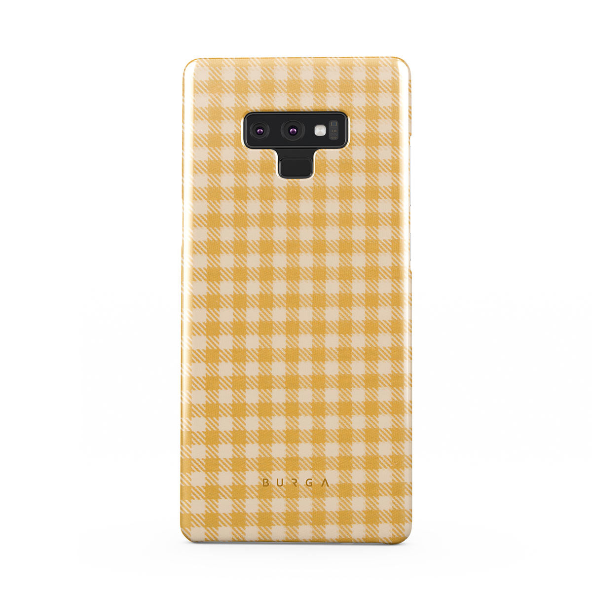 Always fashionable and always inviting, the Preppy Vichy fabric returns in our Tuscan Sun Samsung Galaxy Note 9 phone case. The brightness and warmth of this enchanting yellow plaid design indeed remind us of the always generous Tuscan Sun. You can add a piece of this playful squares pattern with you while keeping your phone out of harm's way!
