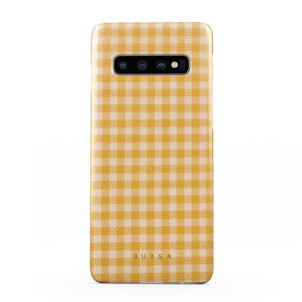 Always fashionable and always inviting, the Preppy Vichy fabric returns in our Tuscan Sun Samsung Galaxy S10 Plus phone case. The brightness and warmth of this enchanting yellow plaid design indeed remind us of the always generous Tuscan Sun. You can add a piece of this playful squares pattern with you while keeping your phone out of harm's way!