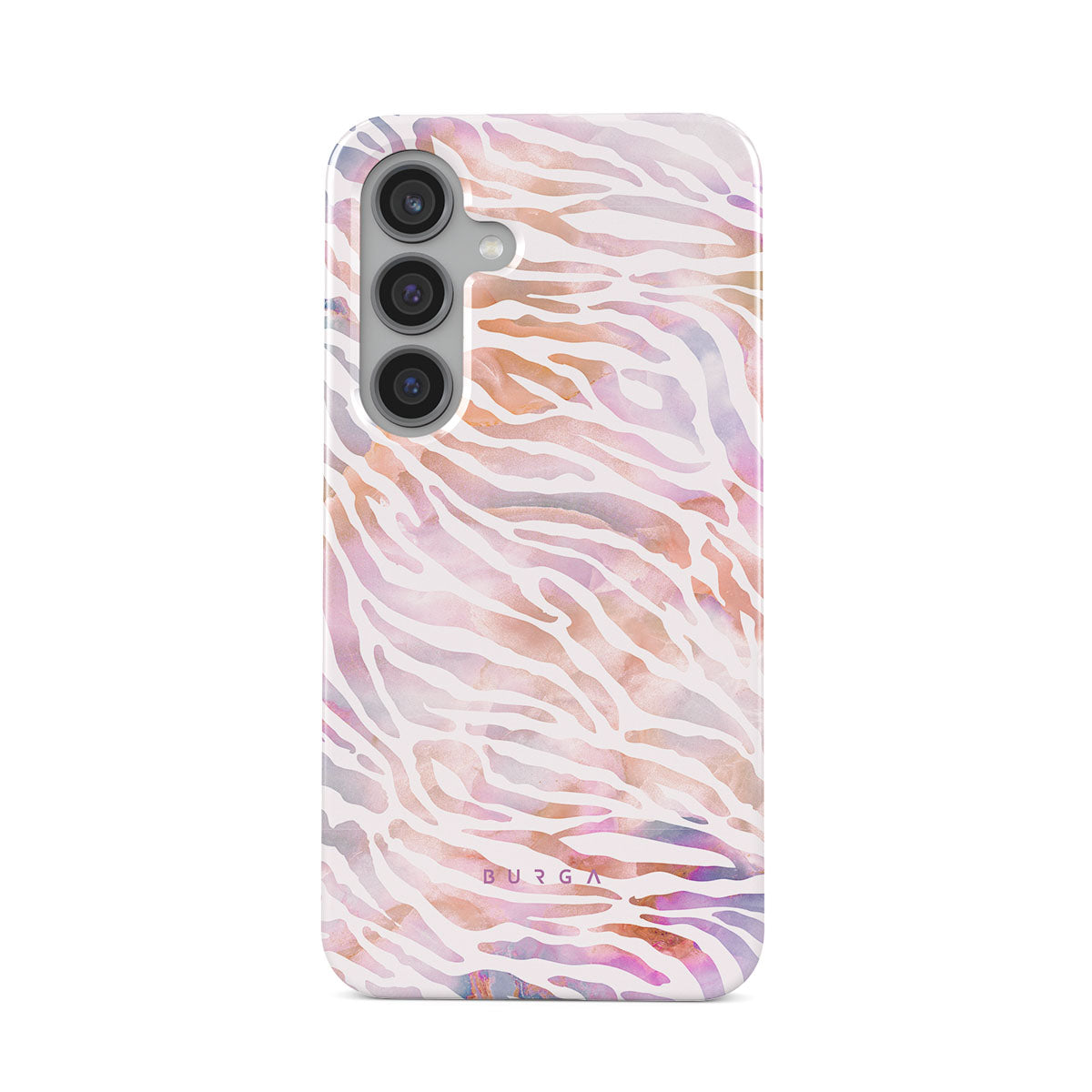 Sultry July Samsung Galaxy S24 FE phone case combines an exotic zebra pattern with the softest shades of pink. The Zebra pattern adds a touch of energy, while pinks will emphasize a softer side. This trendy phone case will keep your cellphone safe and sound from any falls or scratches.